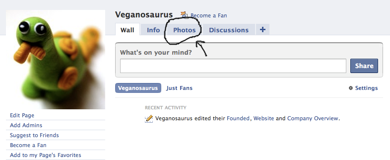 1. You start by adding an application called Pages. The easiest way to find a link to this application is by going to someone else's pre-existing fan page and finding the 'Create a page for my business' link. Here's a screen shot of my Art by Susmitha Page. You can see that the link you're looking for at the bottom of the left hand column (click pic to see a larger version).